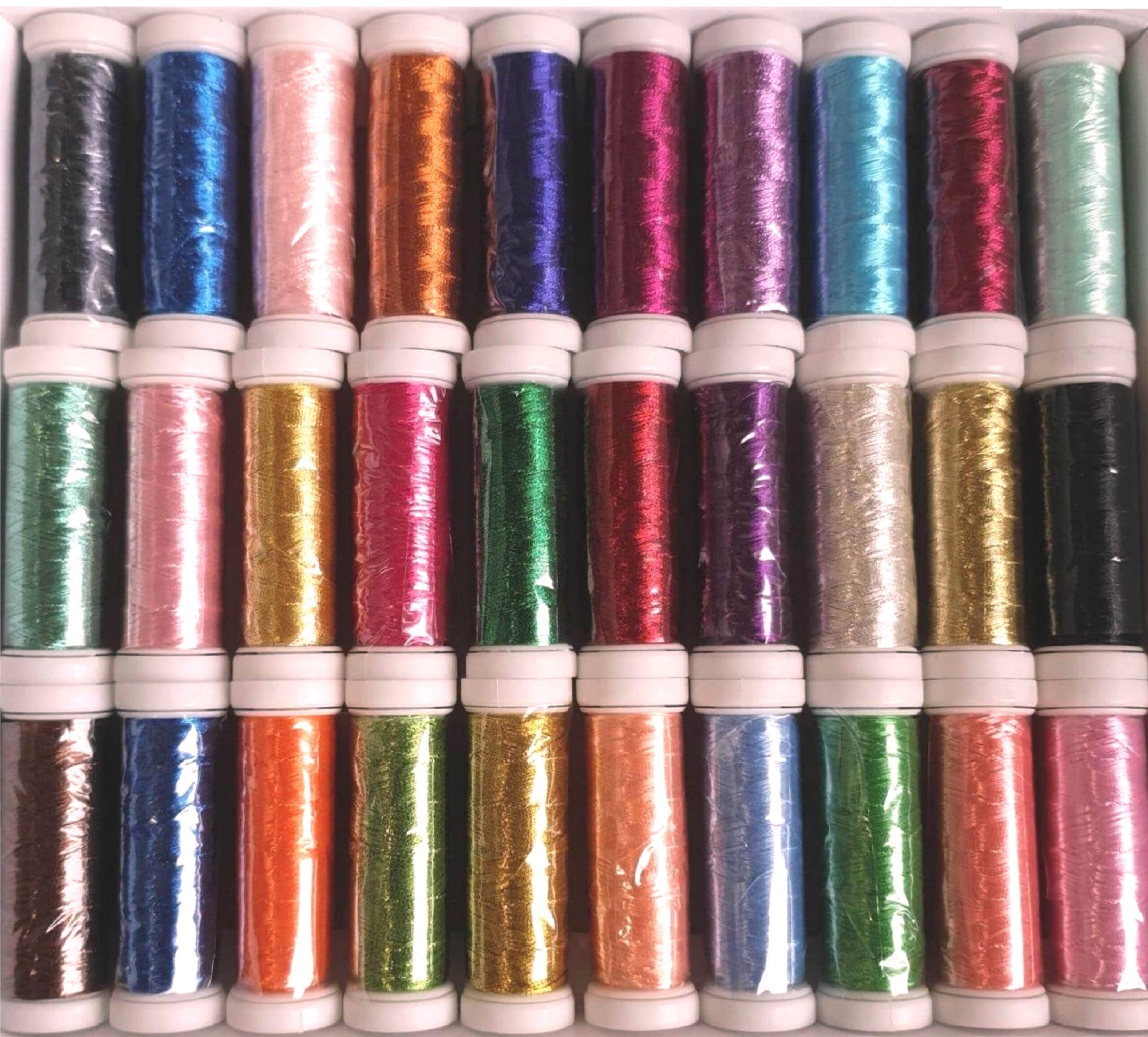 30 Metallic Embroidery Machine Thread Spools; 200 METERS EACH