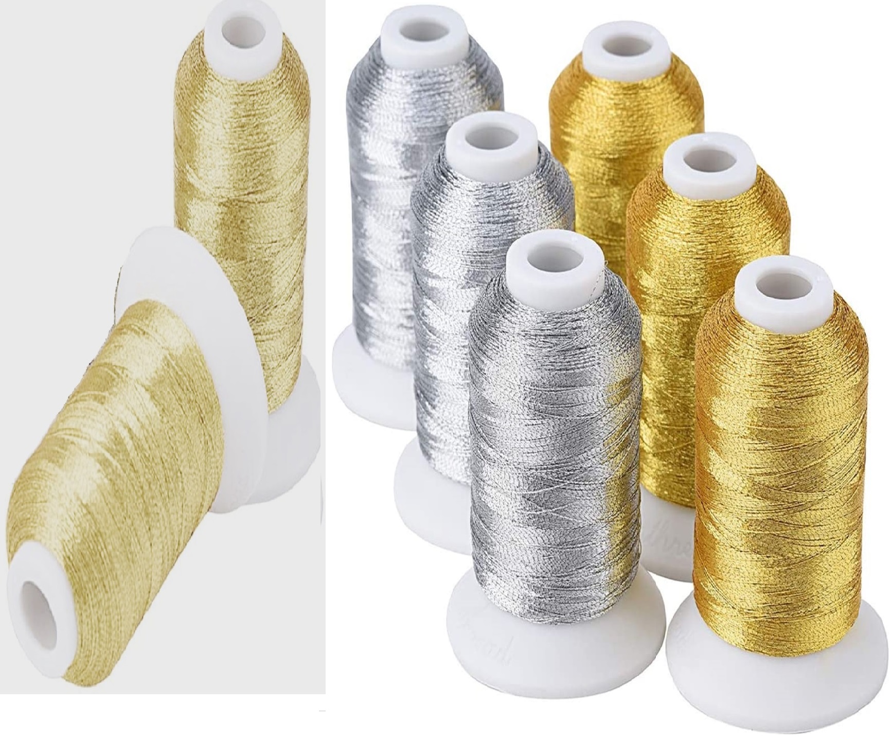 Metallic Embroidery Threads Gold, Light Gold, Silver & Copper Cones, 1,000 – 5,000 -10,000 meters